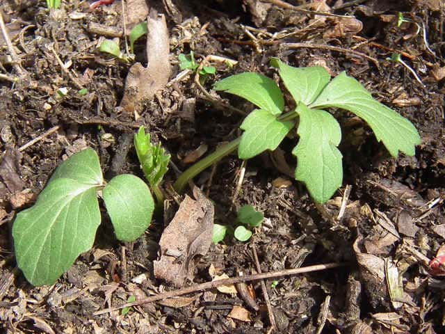 | ▼葉は対生する。 | ▼3枚の輪生となるもの。 | ▼葉の裏。 |