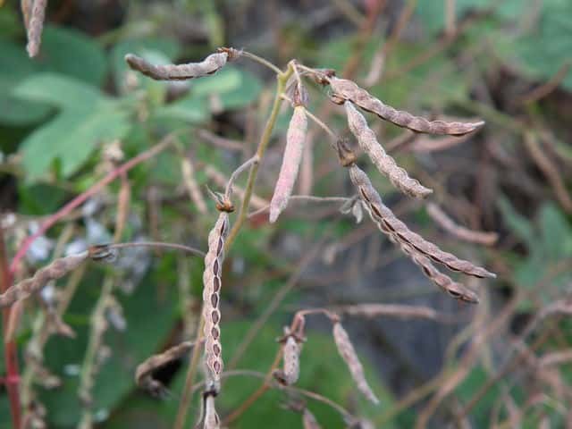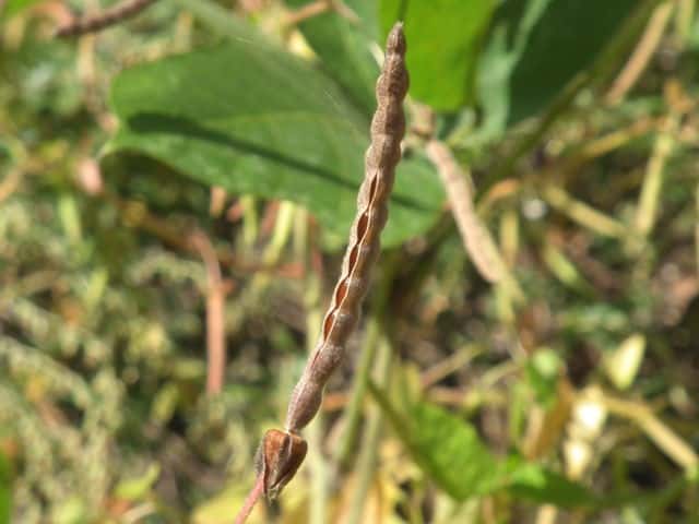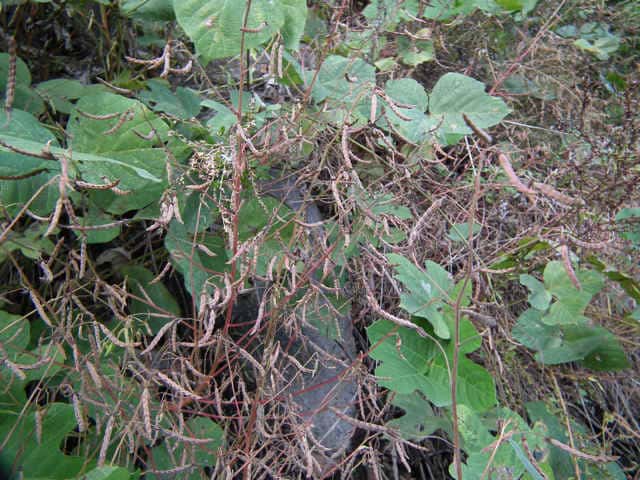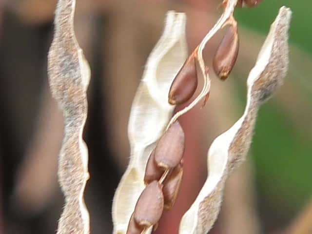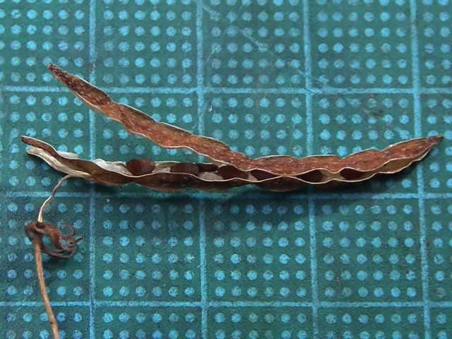 | ▼果実は長さ約3cm、果柄は長さ約4.5cm。 | ▼種子が見えている。 | |
