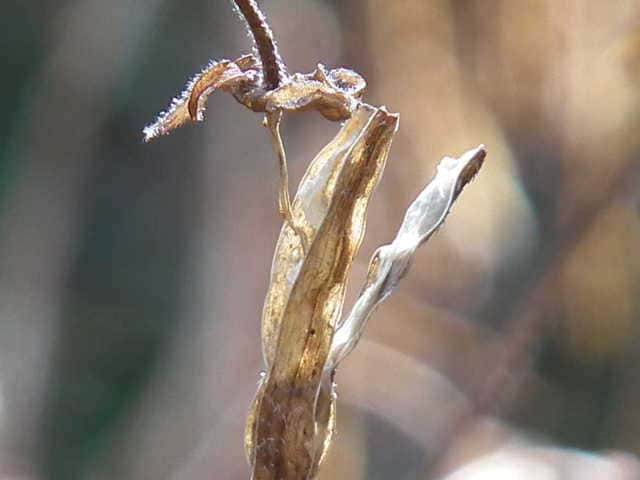 | ▼雌しべは仮雄しべの陰になっている。 | ▼花柄の上部に3個の線形の小苞がある。 | |