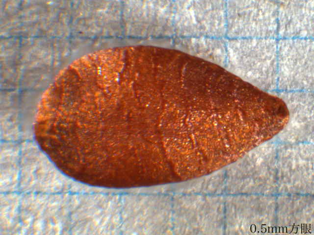 | ▼種子は長さ約2.5mm。 | ▼種子には横の隆起線がある。 | |
