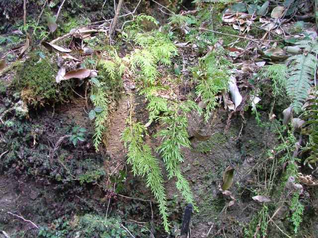 | 常緑性シダ植物 宮城県以南〜九州の山林中の岩上や樹冠に生える。茎は地下茎と地上茎からなる。地上茎は3〜4回羽状に分岐し、長卵形の葉身状に広がる。葉は黄緑色で、葉状枝は集まらずに開き、垂れ下がる。乾燥すれば内側に巻込む。主茎は丸みがあり、背葉の辺縁には白膜はなく、先端は鋭尖状。ソーラスは四角柱状で小枝に1個頂生。晩秋には紅葉する。 学名は、Selaginella involvens イワヒバ科イワヒバ属 似たものに沖縄などに自生するが園芸植物の混生からの逸出とされるイヌカタヒバがある。 |