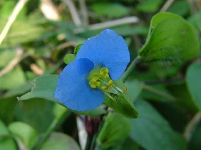 の中で、苞葉に毛が多いものを、ケツユクサ、葉裏に毛があるものをオニツユクサ、ヒメオニツユクサという。花期は7〜8月。