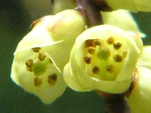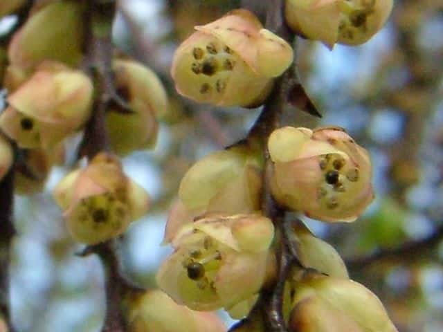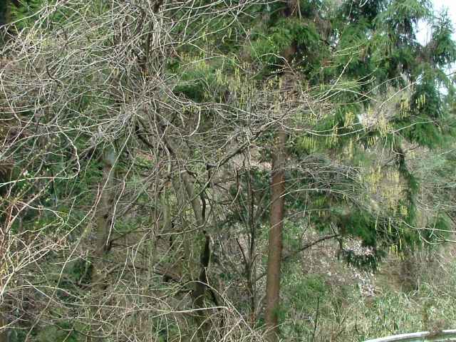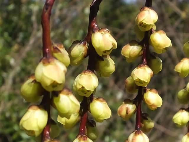 | 落葉低木または小高木 北海道西南部〜九州の雑木林や林縁、山地の道端などに生える。湿り気と日陰を好む。ふつう高さ2〜4mになる。樹皮は赤褐色または暗褐色。本年枝は緑色または赤みを帯びた緑色。稜が2個あり、無毛で少し光沢がある。皮目が多く、円形または楕円形。葉は互生。葉身は長さ6〜12cm、幅3〜6cmの長楕円形〜卵形。葉柄は長さ1〜3cm、ときに赤色を帯びる。雌雄別株。葉の展開前に開花し、長さ4〜10cmの穂状花序が垂れ下がってつく。雄花序は長く、雄花は淡黄色、雄しべは8個、雌しべは雄しべより少し短い。雌花序は短く、雌花は淡黄緑色、雌しべは花の外へ少しつきでる。雄しべは退化して短い。花は長さ6〜9mmの鐘形。花弁は4個。萼片は4個、外側の2個は小さく、内側の2個は大きくて花弁状。果実はかたく乾いた液果。直径7〜12mmの楕円状球形。7〜10月に黄褐色に熟す。花期は3〜4月。 冬芽の側芽は長さ1.5〜3mmの広卵形。先はとがり、2〜4個の芽鱗に包まれる。芽鱗は無毛で、赤褐色〜暗褐色を帯びる。頂芽は大きい。葉痕は半円形、維管束痕は3個。(樹に咲く花) 学名は、Stachyurus praecox キブシ科キブシ属 |