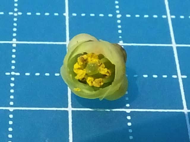 | ▼花は直径約5mm。 | ▼雌しべと8本の雄しべがある。 | |
