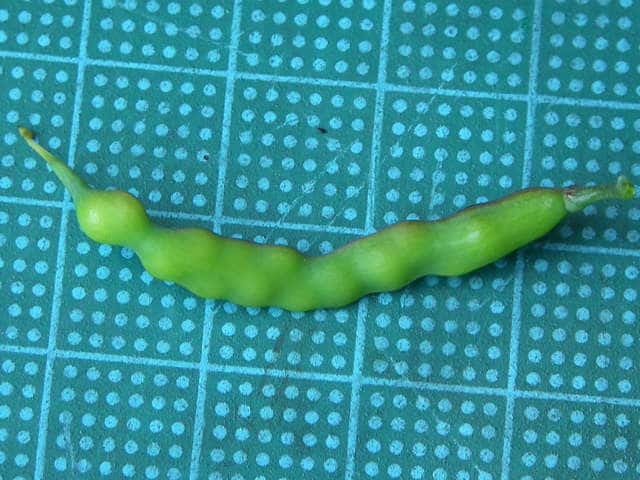 | ▼数珠状にくびれず、中には種子が2列に入る。果実は長さ約3.5cm。 | ||