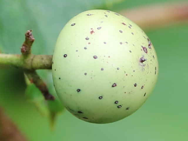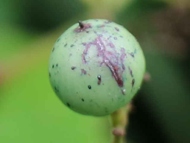 | ▼果実は直径約1cm。 | ▼柔らかい果肉の中に2個の種子がある。 | |