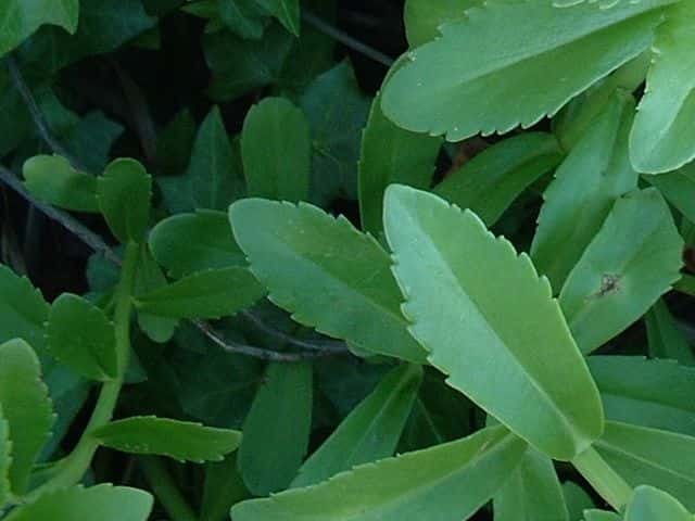 | ▼葉は長さ約6cm、上部に鋸歯がある。 | ||