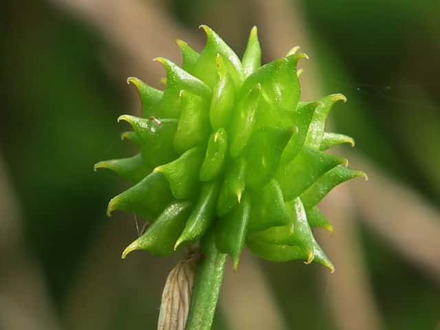 | ▼果実の先端は強く曲がる。 | ▼集合果は長さ約1cm。 | ▼果実は長さ5〜6mm。 |