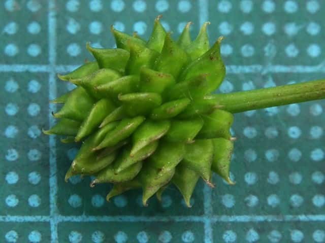 | ▼若い集合果は長さ約9mm。 | ▼若い果実は長さ約3.5mm。 | |