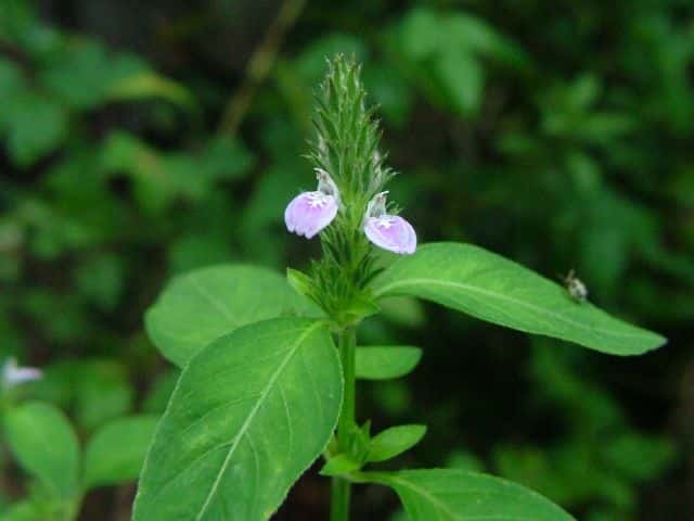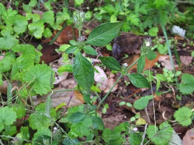 | 1年草 本州〜九州の路傍や林縁に生える。茎はまばらに分枝して斜上し、高さ10〜40cm、6稜があり、下向きの短毛が生える。葉柄は長さ2〜15mm、葉身は卵形で長さ2〜4cm、幅1〜2cm、先はややとがり、基部は鋭形、全縁または波状縁、両面に毛が散生し、乾くと表面に線状の鍾乳体が目立つ。枝先に円錐形または短い円筒形の穂状花序をつくり、密に花をつける。苞は線状披針形で、小苞2枚は線形、萼とともに縁に白色の長毛がある。萼は深く5裂し、上側の1 片はごく小さく糸状、ほかの4片は線形で長さ5〜6mm、中脈付近は緑色、縁近くは膜質で白い。花冠は淡色で下唇内面は淡紅紫色、長さ7mm、筒部は長さ4mm、上唇は三角状で先は2裂し、長さ2mm、下唇は広楕円形で先は2裂し、長さ4mm。さく果は長さ4.5〜7mm、幅1.5mm。 種子は卵円形で4個、長さ1.2mm。花期は8〜10月。(日本の野生植物) 「Flora of Pakistan」には「 Calyx 4-lobed, rarely a 5th rudimentary lobe present」(萼は4裂片、まれに5番目の痕跡的な裂片がある。)とある。 学名は、Justicia procumbens var. procumbens キツネノマゴ科キツネノマゴ属 白い花をつけるものをシロバナキツネノマゴという。 |
