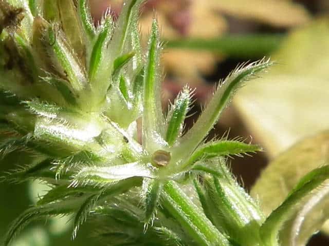 | ▼上唇のひだ状の溝。 | ▼上唇の基部に毛がある。 | ▼子房の上部に毛がある。 |