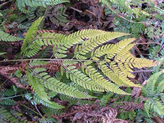 | ▼2008年5月17日 東持田 | ▼最下羽片の第1小羽片が大きく、徐々に短くなる。 | v葉の先端は頂羽片はなく徐々に細くなる。 |