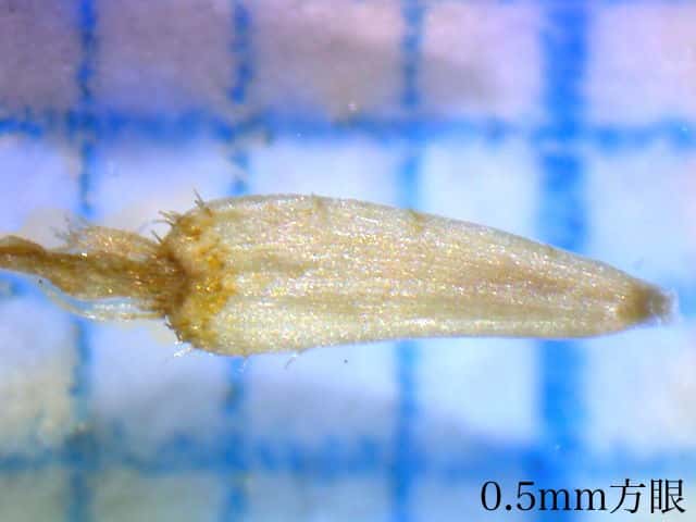 | ▼舌状花の冠毛が小さく短い。 | ▼舌状花の冠毛は長さ0.5mm未満。 | ▼筒状花の冠毛。 |
