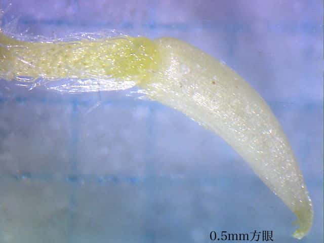 | ▼舌状花の花弁は長さ約1.3mm。 | ▼舌状花の子房。 | ▼舌状花には冠毛がない。 |