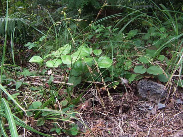 | ▼有花茎は長さ約50cm。 | ▼草刈りされているが、大株となっている。 | |