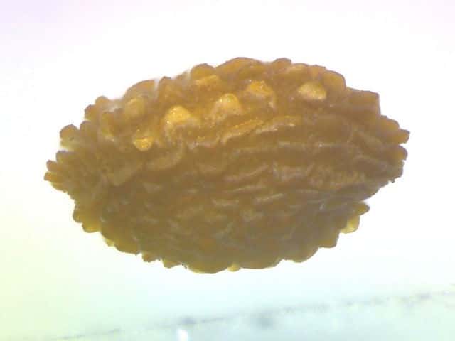 | ▼未熟な果実の縦断面。 | ▼熟した種子は長さ約1mm。 | ▼種子には鈍頭の低い突起がある。 |