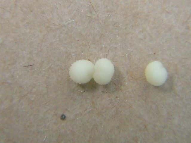 | ▼若い果実は長さ約4mm。 | ▼若い種子は直径約0.9mm。 | ▼種子に背の低い半球形の突起がある。 |
