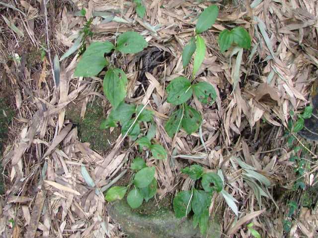 | 多年草 茨城県以南〜九州の常緑樹林内に生える。偽球茎は多肉質。葉は広楕円形で先はとがり、長さ5〜12cm。花茎は高さ15〜30cm、暗紫色の花を5〜10個総状につける。萼片は披針形で長さ約1cm。側花弁は線形。唇弁は倒卵形で長さ約1cm、反曲し、先端はへこむ。基部に2個の針状突起がある。花期は6〜7月。(山に咲く花) 学名は、Liparis nervosa ラン科クモキリソウ属 |