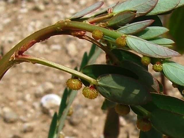 | 1年草 本州〜琉球の路傍、花壇、畑などにふつうに見られる。雌雄同株。分枝様式はコミカンソウ型(主茎につく葉は鱗片葉で、その腋から分枝する。)で、主茎は直立し、長さ8.5〜63cmで無毛または小剛毛があり、小枝は長さ2〜9.5cmで小剛毛がある。普通葉は互生し、小枝あたり10〜39枚ある。托葉は披針形で、長さ1.5〜2mm、幅約0.2mmで、先端は鋭尖形となる。葉柄は長さ0.1〜0.2mmである。葉身は楕円形で、長さ0.7〜1.8cm、幅0.3〜0.7cmで、全縁、無毛で、先端は鈍形、基部も鈍形である。花序は小集散花序で、普通葉に腋生する。雄花雌花とも花弁はない。雄花は花序あたり0〜3個で、花柄は長さ約0.3mmである。萼片は6枚、楕円状倒卵形で、長さ約0.3mm、不明瞭に鋸歯があるか全縁、無毛で先端は鈍形である。花盤は腺条で、6つあり、萼片と互生する。雄しべは3個で、花糸は合着して柱状になり、葯は縦に裂開する。雌花は花序あたり0〜1個で、ほぼ無柄である。萼片は6枚で、狭楕円形、長さ0.3〜0.6mm、幅0.2〜0.3mm、全縁、無毛で、先端は鈍形または円形となる。子房は3室で、無毛、いぼ状突起におおわれる。花盤は環状で、子房の周囲にある。花柱は3本で、長さ約0.2mm、先端が2裂する。さく果は扁球形で、径約2mm、長さ1.4〜1.5mmで、いぼ状突起があり、ほぼ無柄である。裂開後に長さ約0.8mmの柱状体が宿存する。種子は縁が鋭形の3稜形で、長さ約1.2〜1,3mm、幅0.9〜1mmで、褐色、背面に10〜16本の横稜があり、側面の稜は不明瞭。花期は8〜10月。(日本の野生植物) 学名は、Phyllanthus lepidocarpus コミカンソウ科コミカンソウ属 似た仲間にヒメミカンソウがある。 |