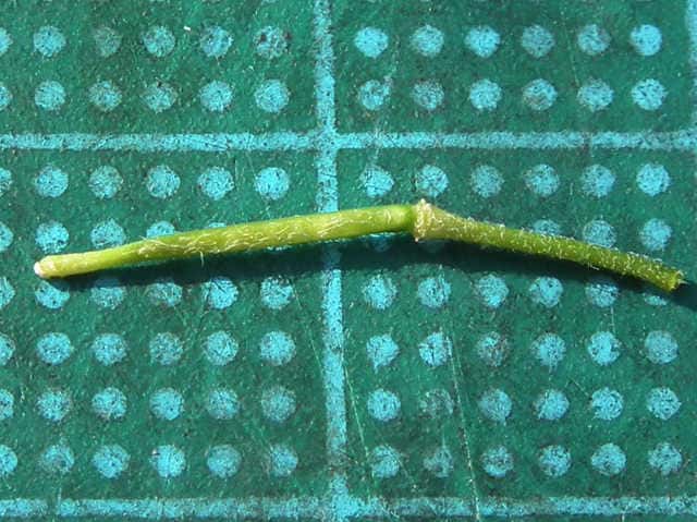 | ▼若い果実は長さ約7mm。 | ▼果実には長毛がある。 | ▼未熟な種子、長さ約0.5mm。 |