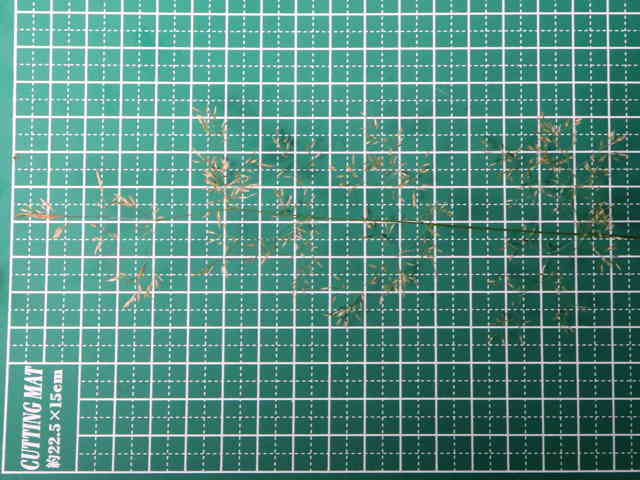 | ▼花序は長さ約23cm。 | ▼小穂は長さ約2.5mm。 | ▼小穂に小花は1個のみある。 |