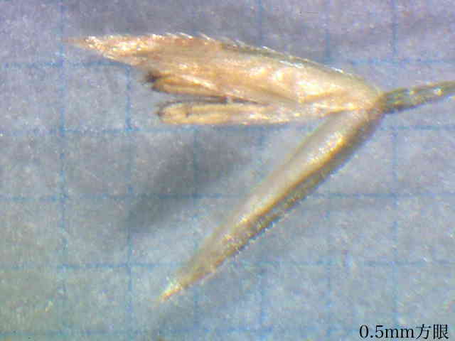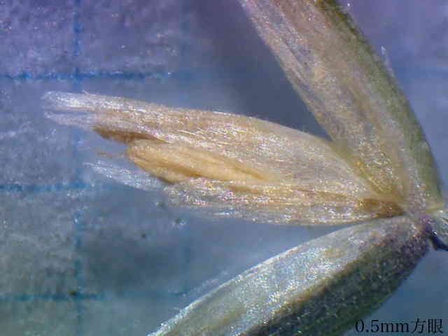 | ▼小穂には1小花がある。 | ▼小花の護穎と内穎。 | ▼内穎が護穎の半長程度と短い。 |
