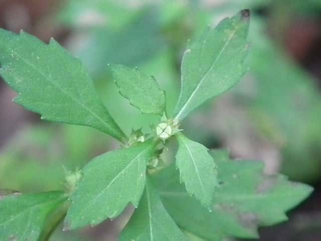 | ▼葉の基部はくさび形になり葉柄がある。 | ▼分果の背面。 | |