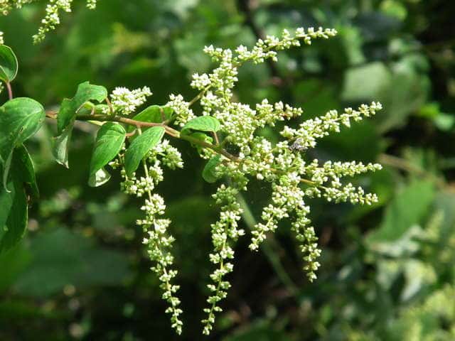 | ややつる性落葉低木 北海道〜九州の丘陵から山地の林内に生える。高さ5mほどになる。樹冠は傘形に広がり、他の樹木をおおう。樹皮は紫褐色。本年枝は暗黄緑色で無毛。なめらかで皮目は目立たない。葉は互生。葉身は長さ4〜6cm、幅2〜4cmの卵形〜長楕円形。先は鈍いかまるく、基部は円形。ふちは全縁。質は紙質で、側脈は7〜8対ある。裏面は白色を帯る。葉柄は長さ7〜15mm。枝先と枝先近くの葉腋から総状花序を出し、黄緑色の小さな花を多数つける。枝先では大形の複総状花序になる。花序の軸は無毛で、横枝は再分枝しない。花は直径3mmほど。花弁と萼片は5個。萼片は長三角形。花弁は萼片より短く、両側から巻いて雄しべを抱く。果実は核果。長さ5〜7mmの長楕円形で、翌年の夏に赤色から黒色に熟す。このため、今年の花と前年できた果実が同じつるについていることも多い。核は長さ4mmほどの楕円形で黄白色。花期は7〜8月。 冬芽は長さ1〜2mmの楕円形で、枝に伏生する。芽鱗は赤褐色で無毛。葉痕は半円形〜三角形で隆起する。維管束痕は3個。(樹に咲く花) 学名は、Berchemia racemosa クロウメモドキ科クマヤナギ属 |