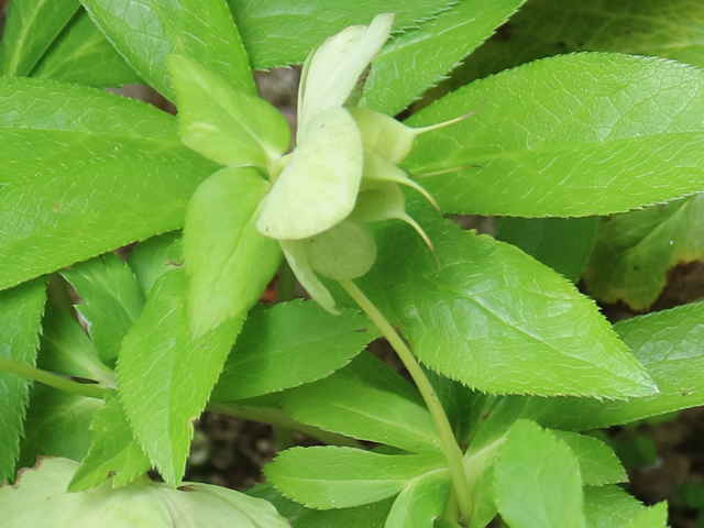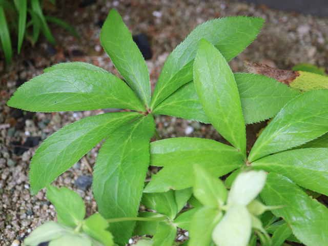 | 常緑多年草 ヨーロッパ原産。掌状に深裂した葉を根生し,早春,15〜30cmにのびた花茎に径5〜6cmの花を1〜2輪つける。白または紫を帯びた5枚の花弁状の萼の中央に,多数のおしべとそのまわりに緑色を帯びた筒形の短い花弁がある。ただし,日本でこの名前で栽培されるのは,南欧・中央アジア原産の近似種レンテンローズ(H.orientalis)(春咲クリスマスローズ)の園芸品種であることが多い。本来のクリスマスローズより大型で,花数も多く,花の直下にある包葉も大きい。花色は黄緑,白,桃,濃紫,黒紫など変化に富んでいる。花期は12〜2月。(コトバンク) 学名は、Helleborus × hybridus キンポウゲ科ヘレボルス属 |