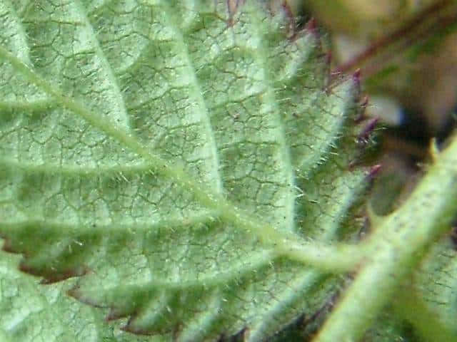 | ▼裏面の脈上に軟毛と刺がある。 | ||