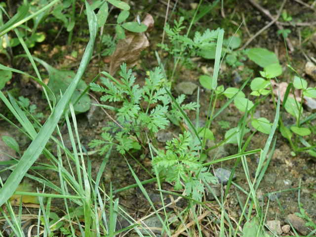 | ▼2019年8月17日 幼株 東出雲 | ▼葉は3回羽状深裂。 | |