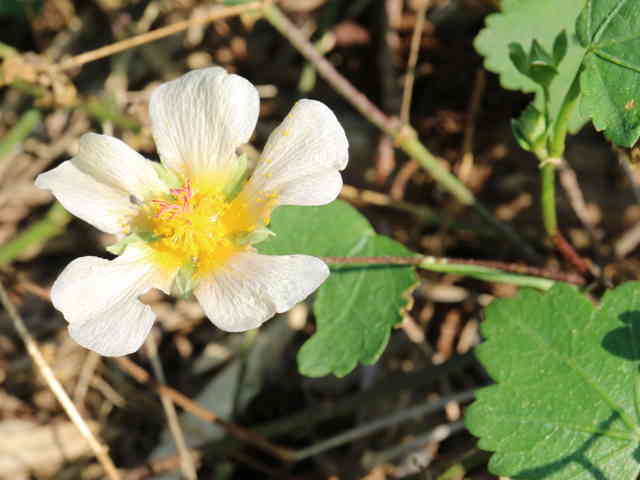 | ▼葉柄の基部に托葉があある。 | ▼茎は横に這って伸びる。 | |