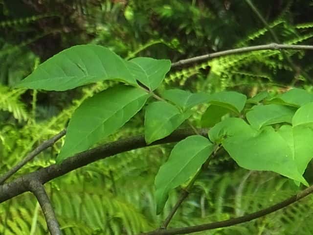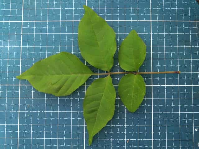 | ▼脈上に毛がある。 | ▼小葉3対の葉は葉柄を含め長さ約17cm。 | |