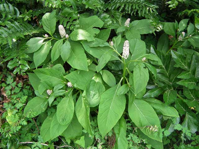 | 多年草 関東地方以西〜九州の山の木陰に生える。茎は太く高さ1m以上に達する。葉は無毛で柄は長さ1.5〜3cm、葉身は長さ15〜30cm、幅5〜10cm、先はやや尾状にとがる。花は直立した総状花序をつくって開き、直径約8mmで淡紅色を帯びる。果実は球状で黒紫色に熟し、種子は腎円形、黒色で光沢があり、細い同心円状の条があり直径約3mm。花期は6〜9月。(原色日本植物図鑑) 学名は、Phytolacca japonica ヤマゴボウ科ヤマゴボウ属 似た花のヤマゴボウは萼が白色で、雄しべの葯が淡紅色、心皮は8個に離生し果実は分果となる。またヨウシュヤマゴボウは果序が垂れ下がる。 心皮は8個で離生、種子は平滑 ・・・・ ヤマゴボウ 心皮は7〜10個で合生、種子には同心円状の線条 ・・・ マルミノヤマゴボウ |