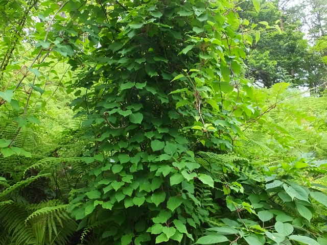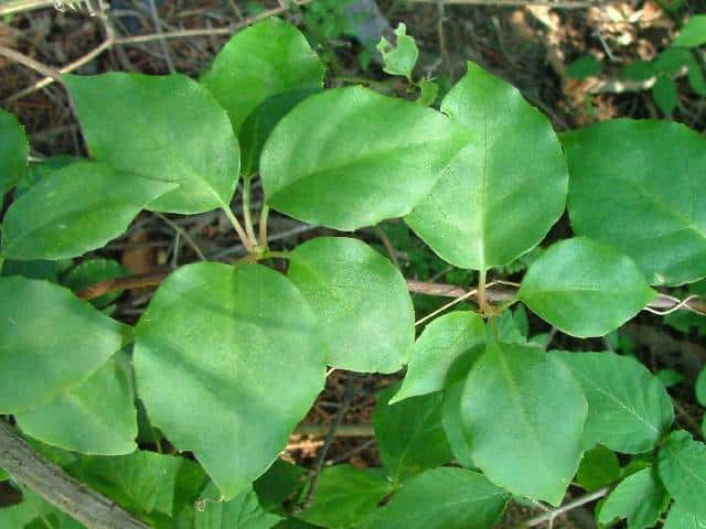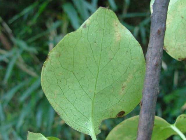 | 落葉つる性木本 北海道〜九州の丘陵や山地の林縁に生える。つるは左巻き。樹皮は古いつるはコルク質が発達する。葉は互生。短枝の先にまとまってつく。葉身は長さ2〜6cmの広卵形で、波状の鋸歯がある。葉柄は葉身の長さの半分以上ある。雌雄別株。直径1cmほどの花が短枝から垂れ下がってつく。花被片は9〜10個。すべて黄白色の花弁状。果実は球形の液果が房状につく。液果は直径8〜10mm。10月に青黒色に熟す。種子の表面には突起が多い。花期は6〜7月。(樹に咲く花) 学名は、Schisandra nigra マツブサ科マツブサ属 |