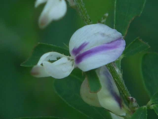| 多年草 日本全土の日当たりのよい草地や道ばたに生える。茎は高さ0.6〜1mになり、やや木質化し、伏毛がある。葉は3小葉からなり、茎に密生する。小葉は長さ1〜2.5cm、幅2〜4mmのくさび形〜倒披針形で、裏面には伏毛がある。花は葉腋に数個ずつつき、黄白色で長さ6〜7mm。旗弁に紅紫色の斑点がある。閉鎖花も葉腋に数個ずつつく。豆果は扁平な円形または広楕円形。中には種子が1個入り、熟しても裂けない。花期は8〜10月。(野に咲く花) 学名は、Lespedeza cuneata マメ科ハギ属 変種にハイメドハギがある。茎が地を這い、茎の毛が開出し、小葉が短い。旗弁全体、他の弁の先が紫色を帯びる。 |