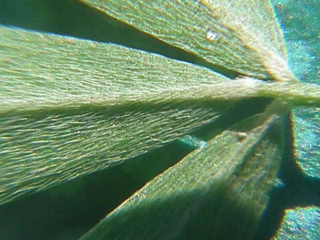 | ▼小葉の細脈(透過光)。 | ▼裏面には伏毛が密生する。 | |