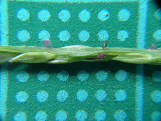 | ▼第1苞穎は三角形でごく小さい。 | ▼中軸には微細な突起がある。 | |
