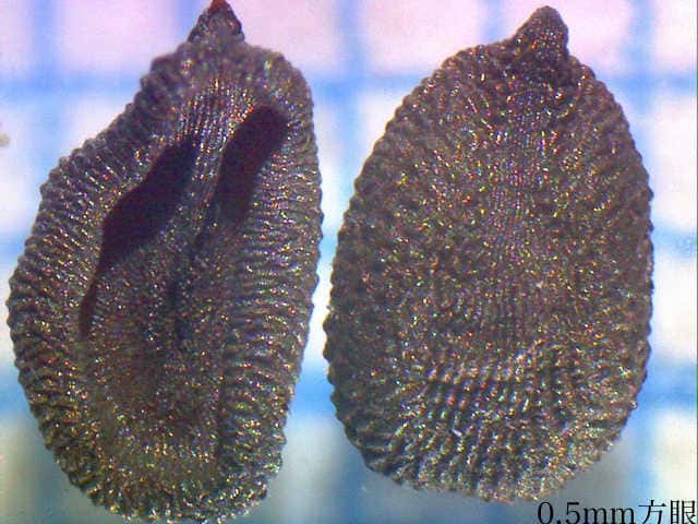 | ▼種子は長さ約1.5mm。 | ▼種子の裏側。 | |