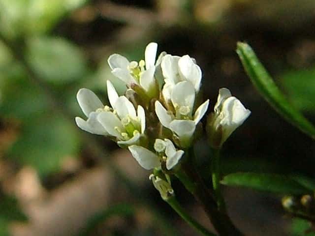越年草 ヨーロッパから東アジア原産。1992年に宮城県から日本海側にかけて侵入が報告された。関東地方など太平洋側でも見つかっており、既に広範に分布していると考えられる。道ばた、芝生、庭園などに群生する。在来の近縁種タネツケバナに非常によく似るが、果時にも根生葉が生存する、花弁の長さ2〜3mm、雄しべ数4本の花が多い、開花が早いなどの点で識別できる。茎、葉は無毛。葉は羽状深裂し、小葉は広楕円形で頂葉が大きく、卵形を呈す。根生葉の小葉には柄がある。茎には葉があまりつかない。 花期は春。(日本帰化植物写真図鑑) 学名は、Cardamine hirsuta アブラナ科タネツケバナ属 タネツケバナに似ているもの。 |