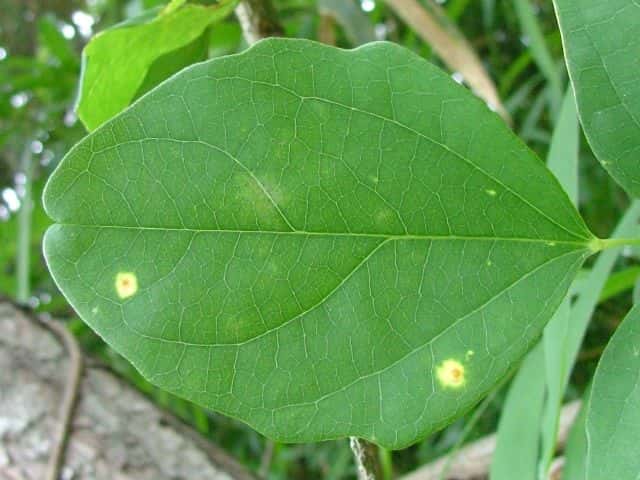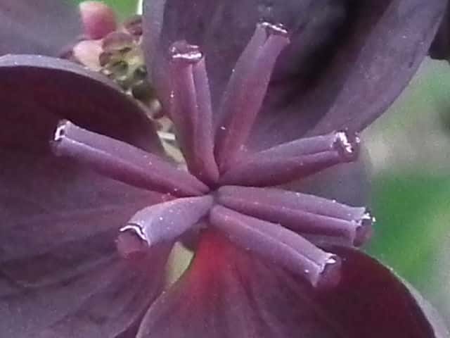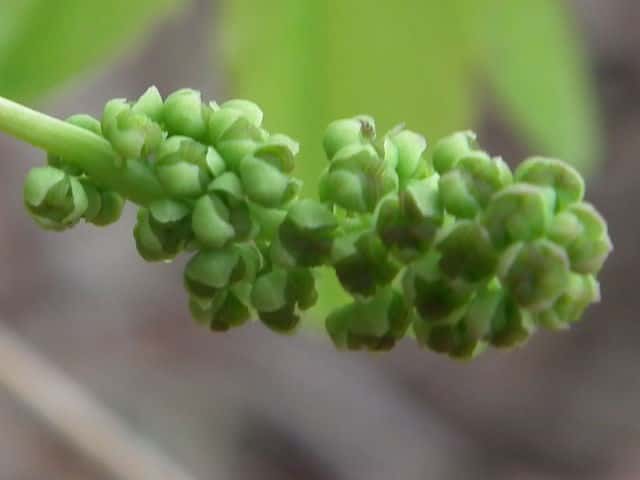 | ▼雌しべが5個ある。 | ▼雄花は直径約4mm、雄しべが6個ある。 | ▼花粉を出す葯。 |