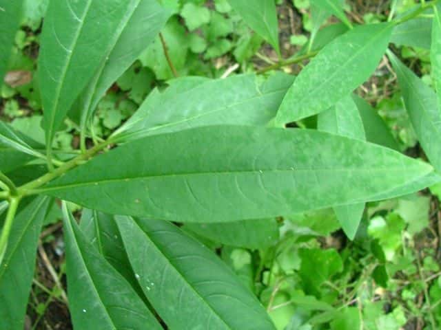 | ▼萼筒入口に長い雄しべ4本、内部に短い雄しべ4本と雌しべがある。 | ▼枝は3叉する。 | |