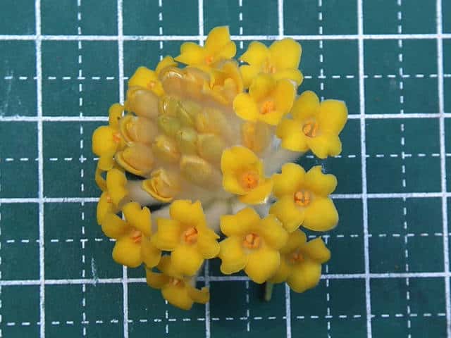 | ▼花序は直径約3.5cm。 | ▼花は花弁はなく、長さ約1.5cm。 | |