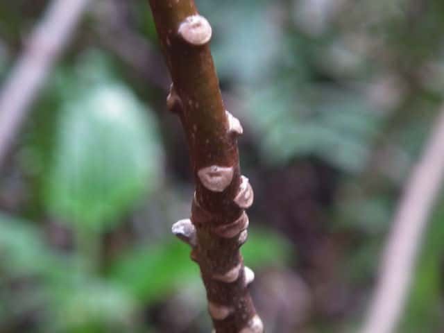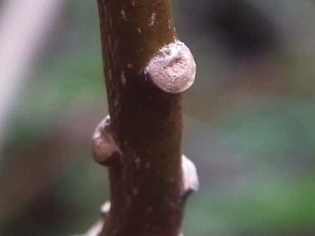 | ▼冬芽は披針形。 | ▼葉痕は半円形、維管束痕は1個。 | |