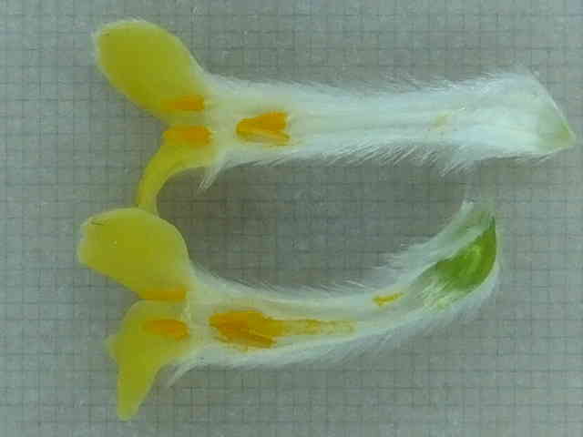 | ▼雌しべ、子房合わせて長さ約1cm。 | ▼子房の上部に毛がある。 | ▼雌しべの柱頭に毛がある。 |