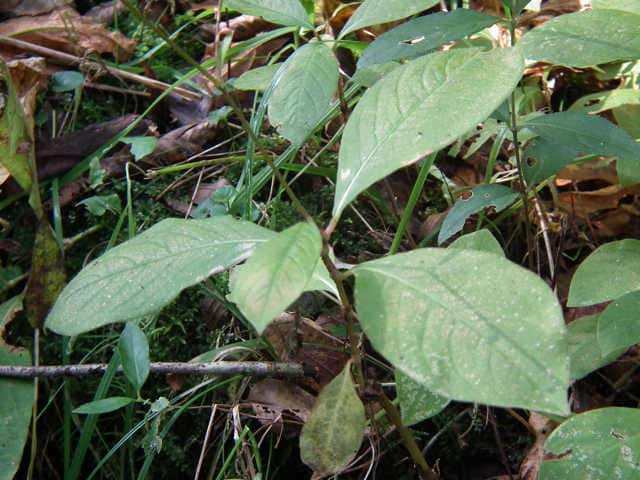 | 多年草 北海道〜琉球の山地や低地の林縁や林下に多い。茎は直立しまばらに枝を分け、ふつう中実で、伏毛があり、高さ40〜80cmになる。葉は茎全体につくか小形の個体では茎の上部に集まり、楕円形〜広楕円形、先は鋭形、基部は広いくさび形、長さ5〜15cm、幅4〜9cm、両面に長さ1mm内外の毛があり、表面の中央にはときに帯紫色の斑が見られる。葉柄は短く、上部の葉はほとんど無柄、托葉鞘は膜質、褐色で、表面と縁に毛がある。萼は4裂し、裂片は卵形で上側のものは赤色、下側のものは色が淡い。雄しべはふつう5個。そう果はレンズ状の卵形、鈎状になった花柱以外は萼に包まれ、長さ約2.5mm、褐色で光沢がある。花期は8〜10月。(日本の野生植物) 学名は、Persicaria filiformis タデ科イヌタデ属 萼片の全てが白い品種をギンミズヒキという。 よく似たシンミズヒキは、葉の両面がほとんど無毛で、果実が3〜3.5mmと大きい。 |