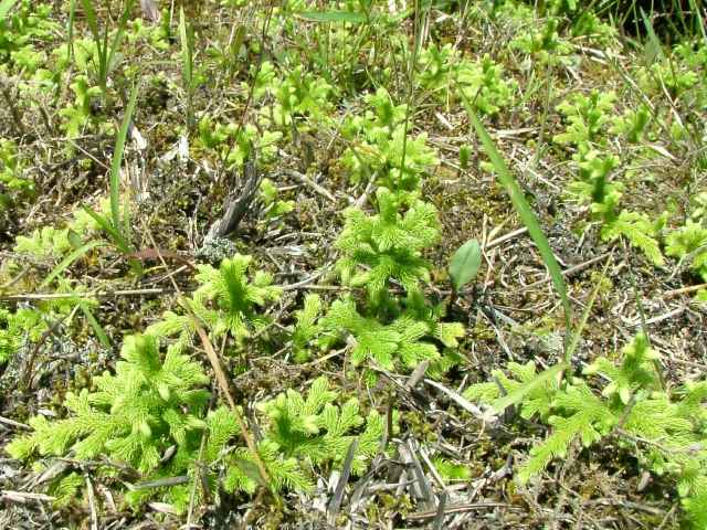 | つる性常緑シダ植物 伊豆半島〜九州の日当りのよい水田や山麓の斜面に生える。匍匐する茎は長くはい、ところどころで直立した茎を出す。直立茎は分枝して樹木状になる。小枝の葉は線状披針形で全縁。胞子嚢穂は小枝の先に1〜2個頂生し、卵形で長さ3〜10mmで下向きにつく。 学名は、Lycopodium cernuum ヒカゲノカズラ科ヒカゲノカズラ属 |
