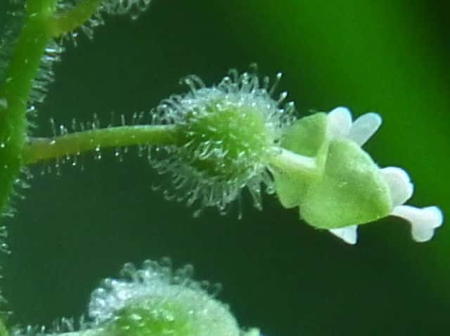 | ▼2008年8月2日 八雲 | ▼花弁は2個で、先が2裂する。 | ▼花柄や花序軸に腺毛が多い。 |
