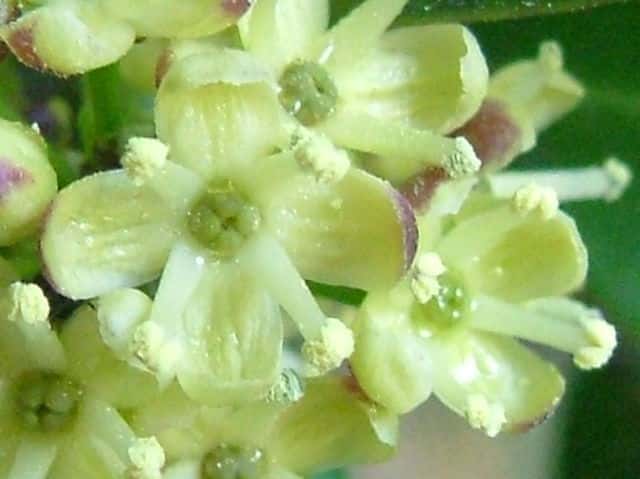 | ▼果実の頂部に柱頭の跡が残る。 | ▼果実は直径約9mm。 | ▼果実の縦断面、核が4個ある。 |