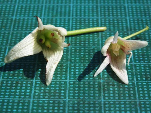 | ▼雌花には3個の子房がある。 | ▼子房が4個のものもある。 | |